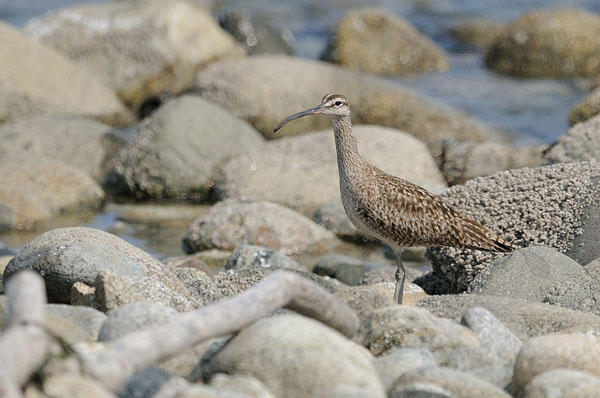 A Whimbrel was wondering amongst the rocks close to the shoreline.